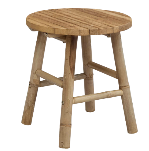 Ce petit tabouret en bambou offre une assise d’appoint naturelle et esthétique. Léger et stable, il se glisse facilement dans une déco tropicale, bohème ou écologique. Parfait en complément de salons exotiques ou comme accessoire dans une scénographie végétale. À utiliser en assise basse ou en support déco.